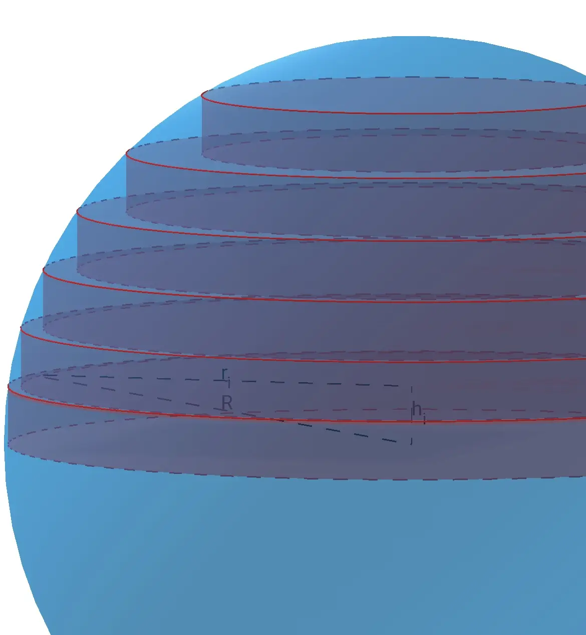 然后根据填充圆柱的方式,可以得到每个圆柱的半径表达式。